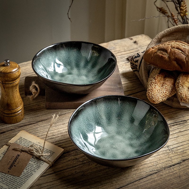 Color: 7.5 inch irregular ice crack glaze salad bowl – dark green